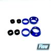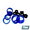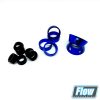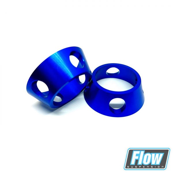 Die schwarzen Spacer werden auf der Kolbenstange zur Reduzierung des Federwegs montiert, die blauen Federsitze bzw. Spacer werden auf dem Cartridgekopf zur Anpassung der Federlänge verwendet.